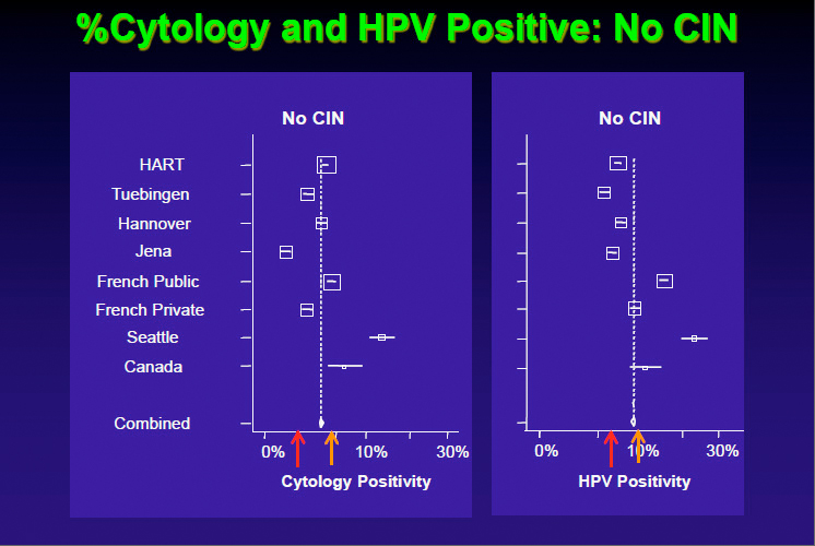 • Type-specific detection does not predict CIN2+ or CIN3+ better thahn pooled detection (Gage et al, JCM, 2011; Marks et al, JCM, 2012). HPV pos/pos is a very strong predictor of CIN3+ (Kjaer et al, JNCI, 2011)