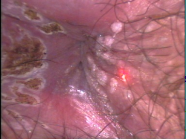 Condilomas acuminados en ano.